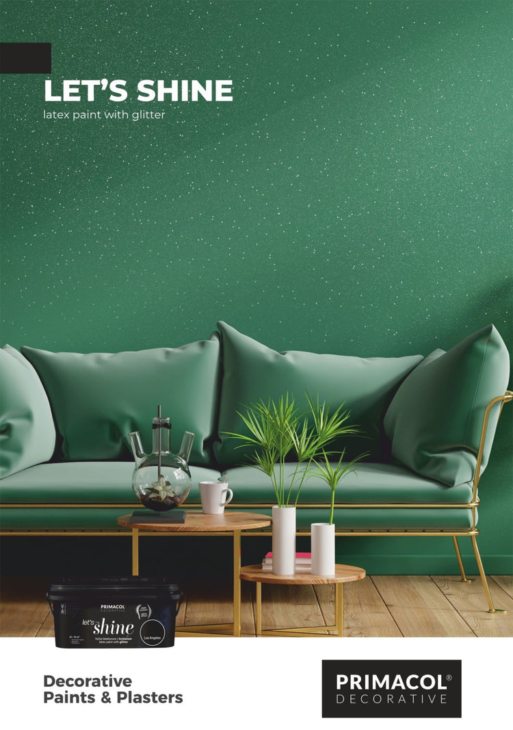 Let's Shine è una pittura decorativa progettata per pareti e soffitti interni. A seconda del colore scelto, Let's Shine contiene fini particelle di glitter argentato o dorato per ottenere un effetto luccicante sottile, che si intensifica con l'illuminazione migliorata. Questa pittura vanta una buona lavabilità e un'ottima copertura, garantendo sia durata che una finitura liscia. Disponibile in 30 colori, Let's Shine offre un'ampia gamma di opzioni, permettendoti di trovare la tonalità perfetta per completare il tuo spazio.