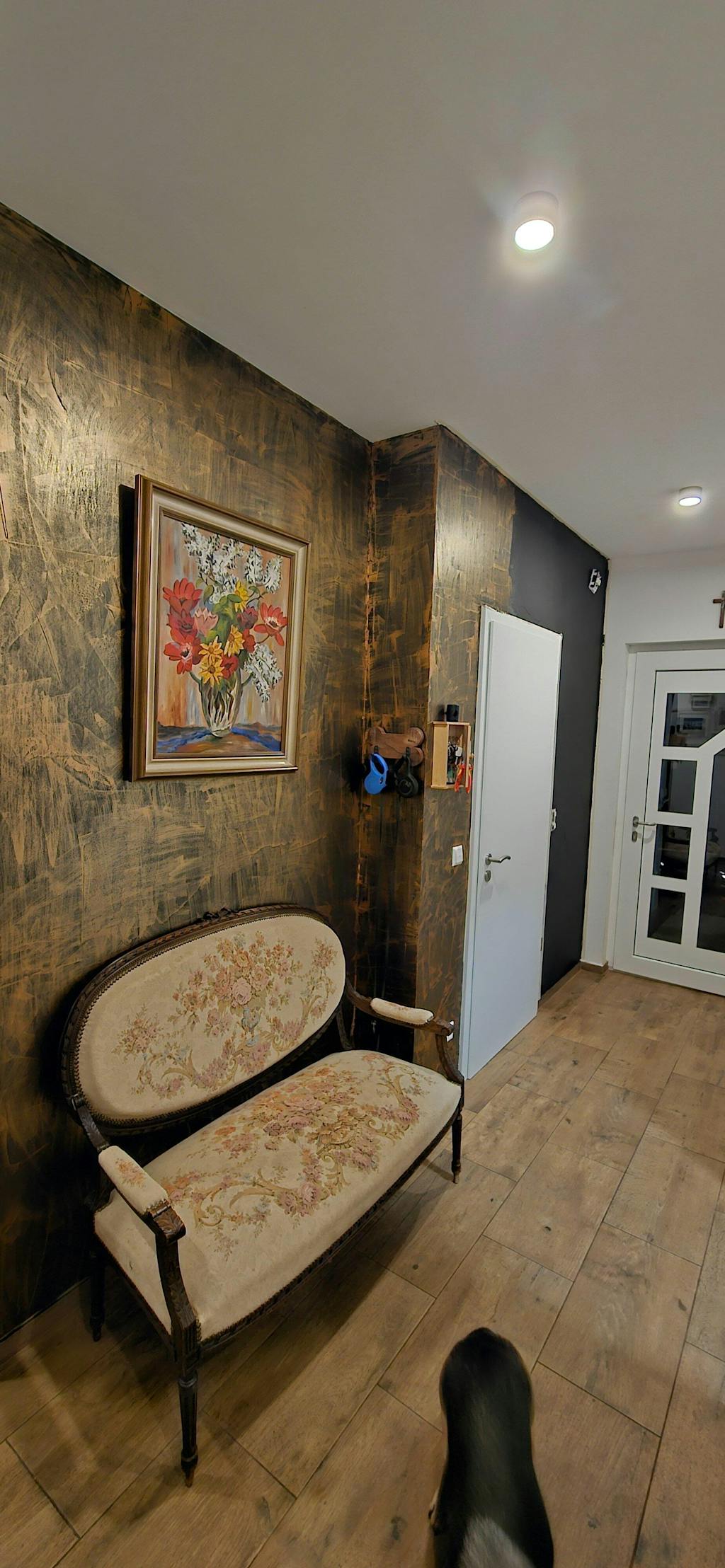 Strumenti: rullo per pittura - acquista qui, cazzuola veneziana - acquista qui, spatola - acquista qui, carta vetrata a grana fine
