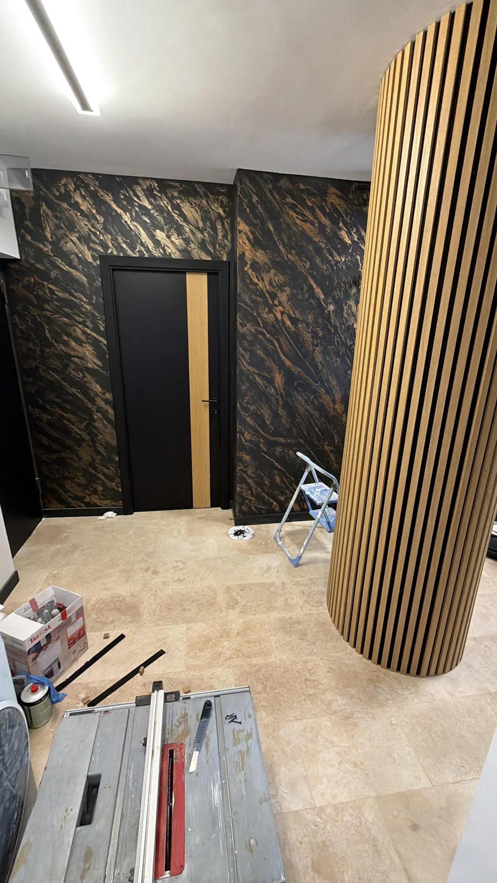 Strumenti: rullo per pittura - acquista qui, cazzuola veneziana - acquista qui, spatola - acquista qui, carta vetrata a grana fine